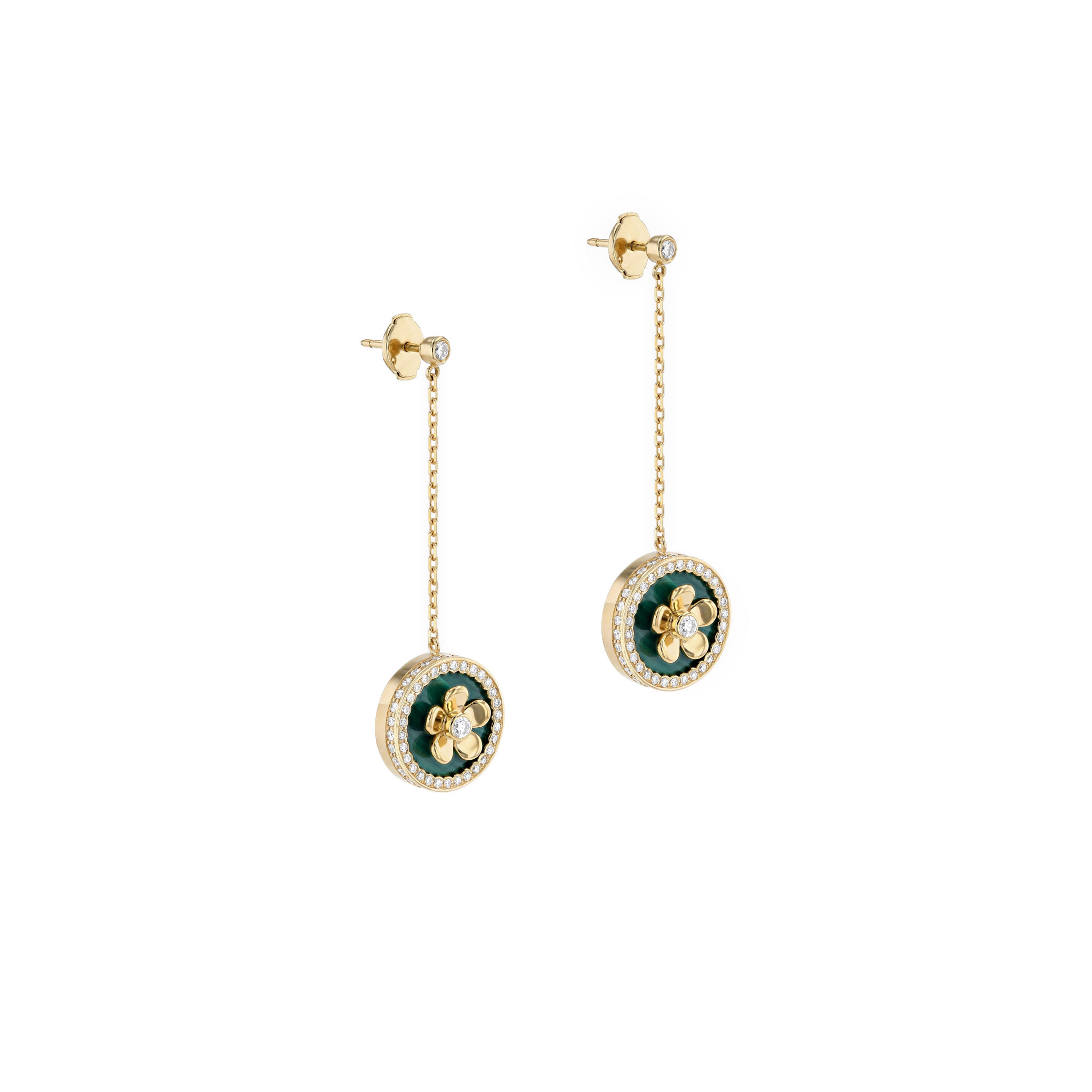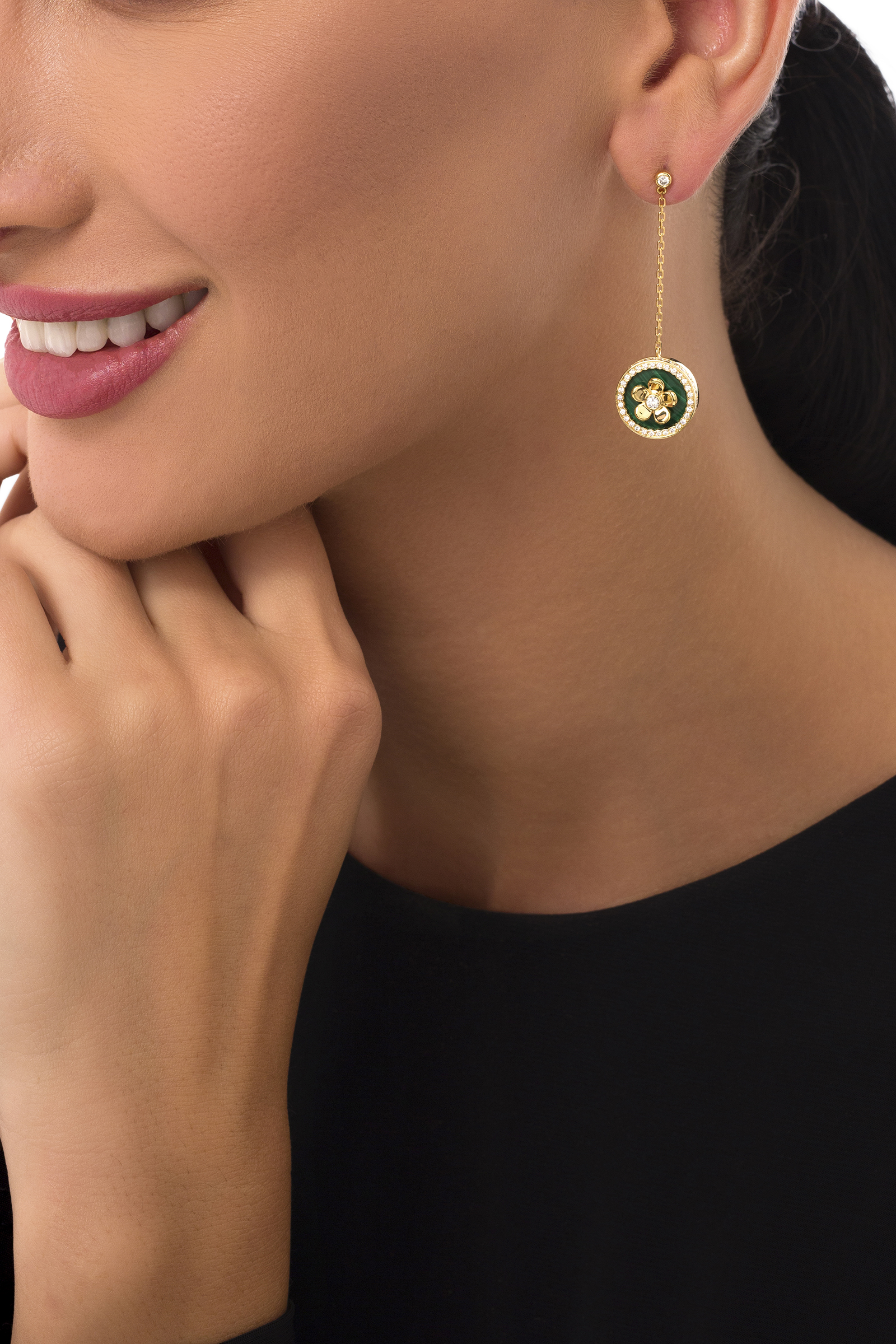 DIAMOND MALACHITE CHAIN HANGING EARRING Y/G