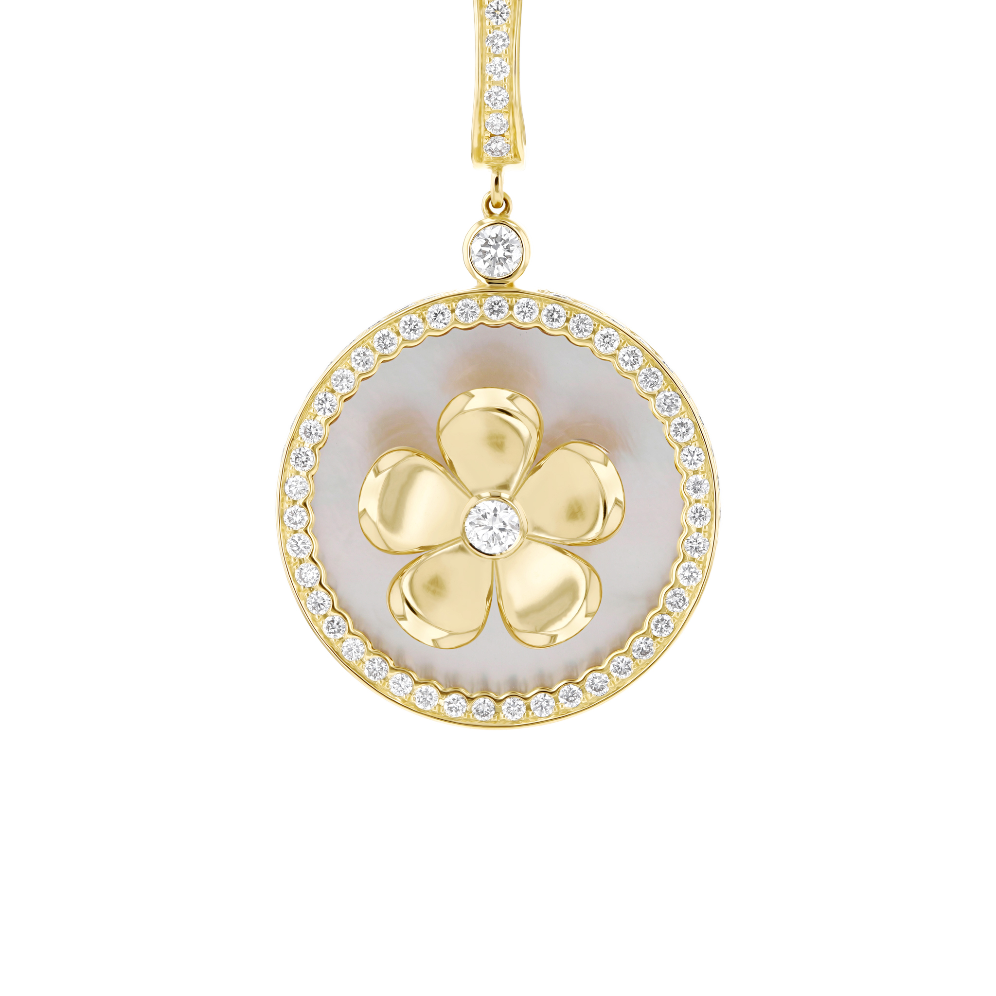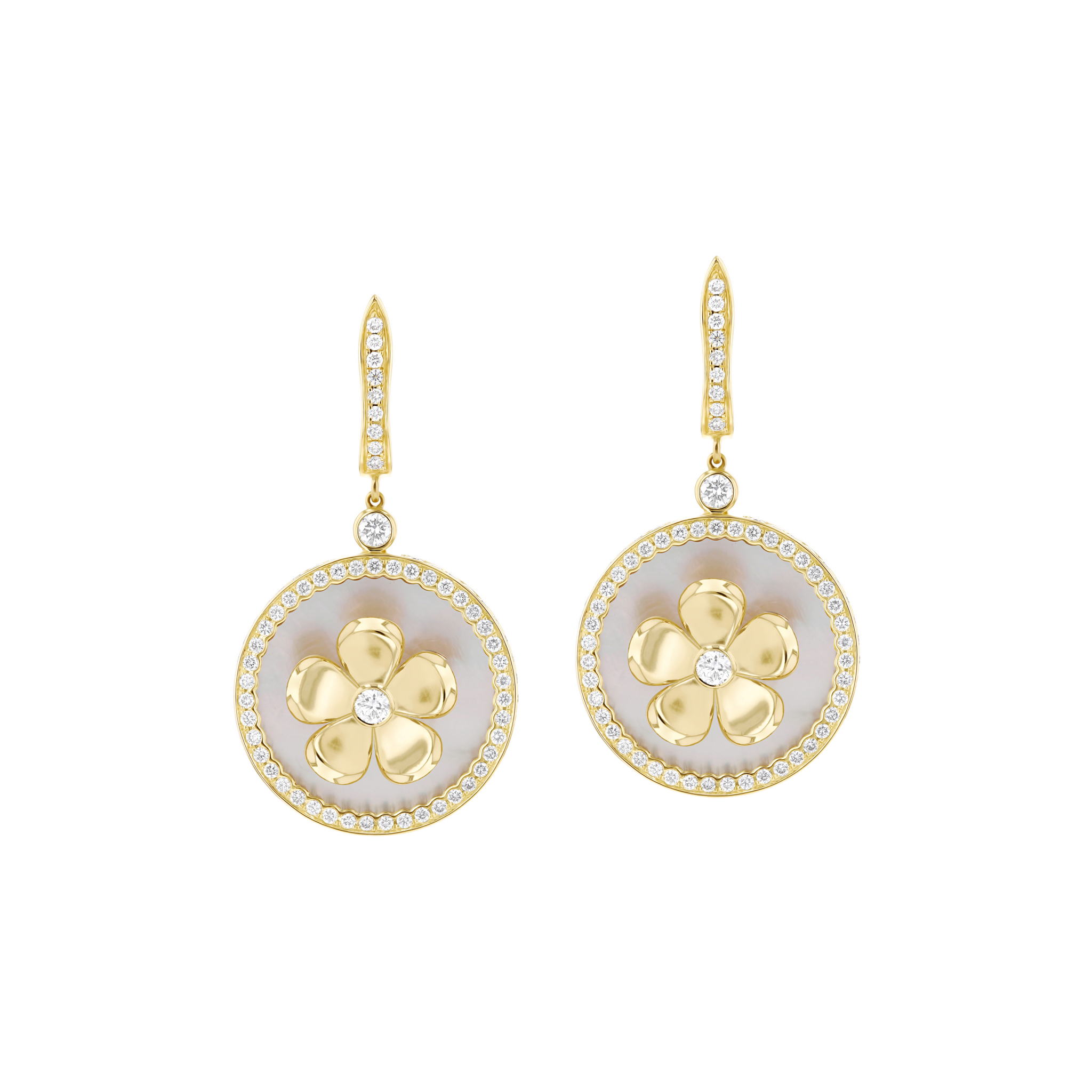 DIAMOND WHITE MOTHER OF PEARL FLOWER ROUND EARRING Y/G